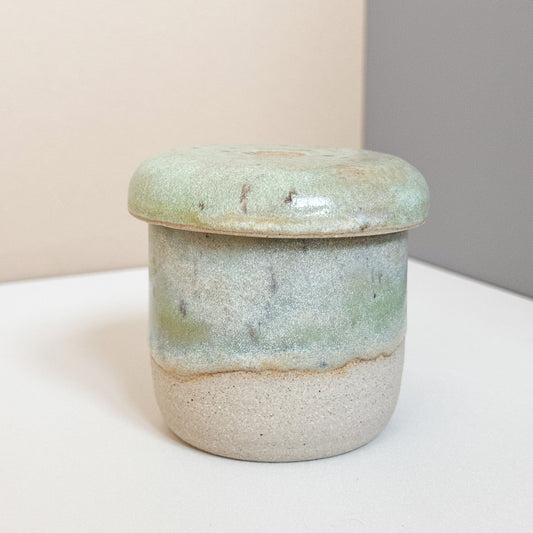 Lidded Flat White Coffee Cup in Muted Turquoise