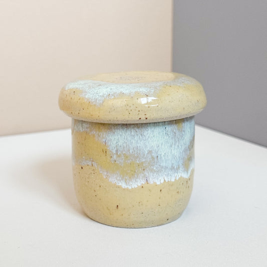 Lidded Flat White Coffee Cup in Speckled Yellow