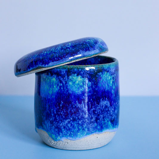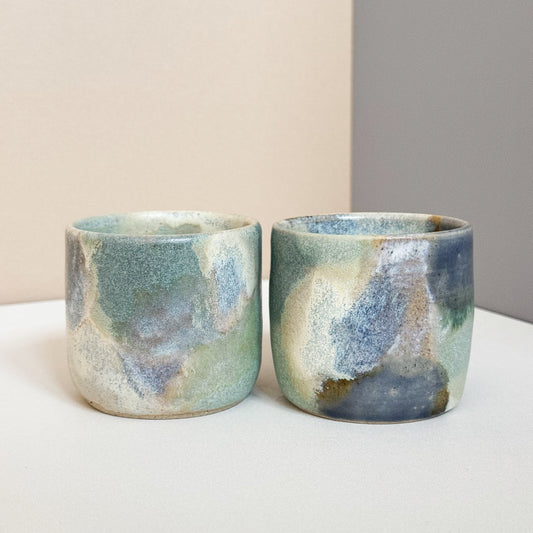 Lidded Flat White Coffee Cup in Muted Turquoise